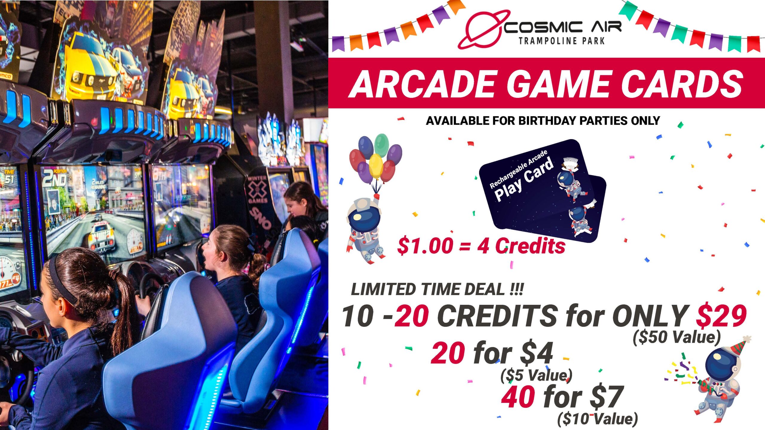 Take your party to the next level by purchasing Cosmic Arcade game cards.